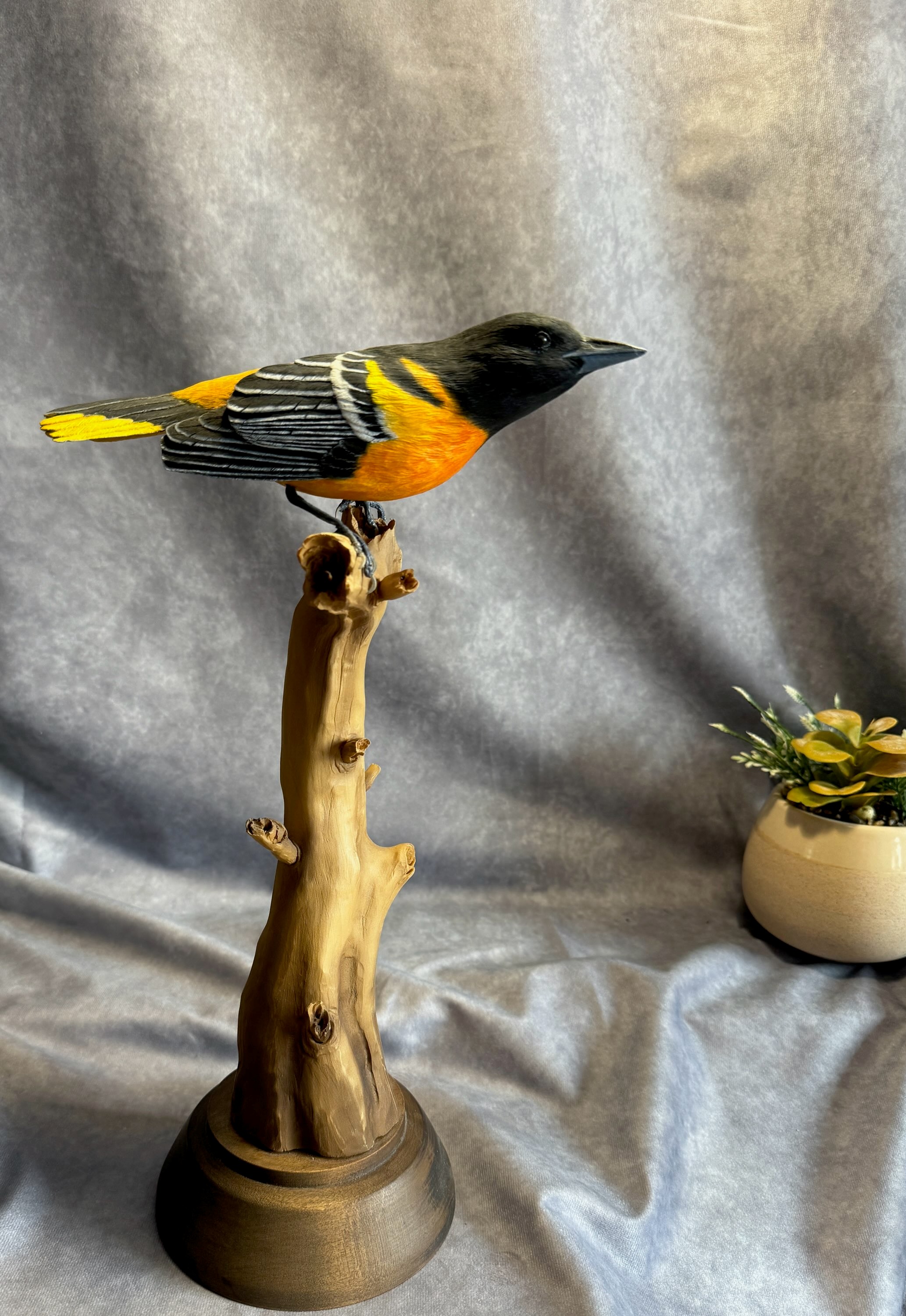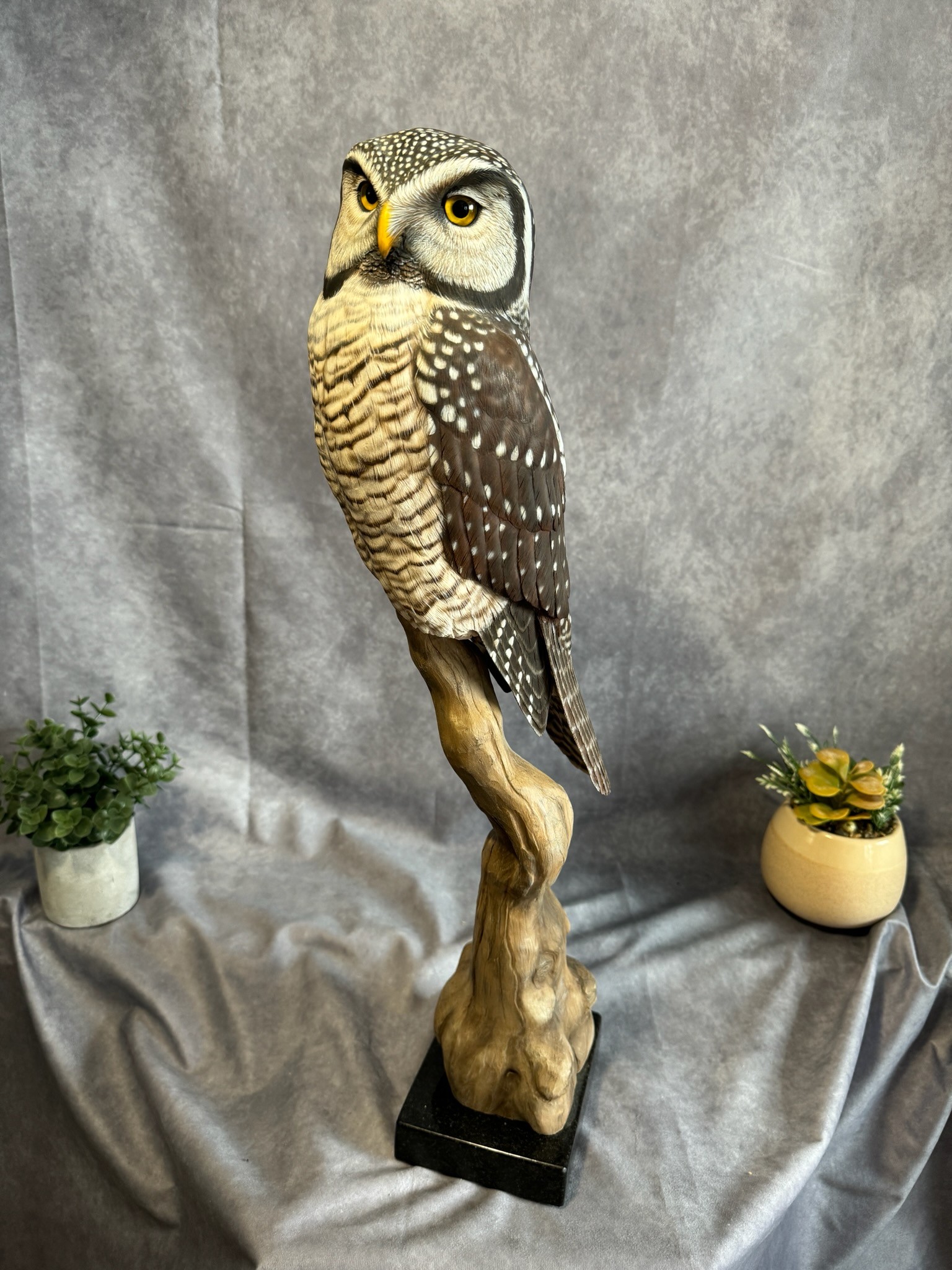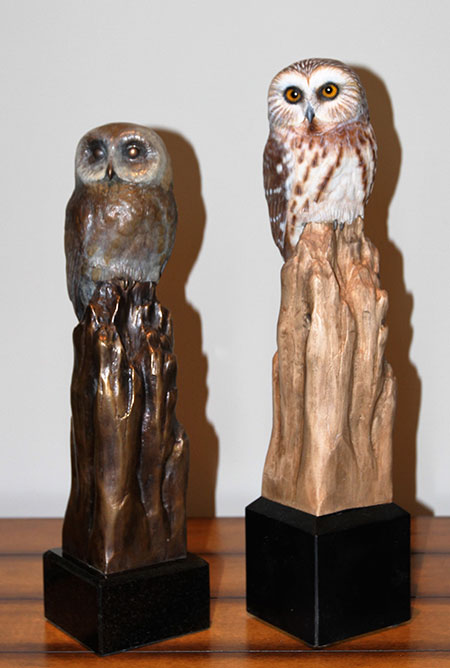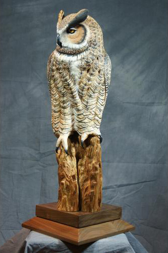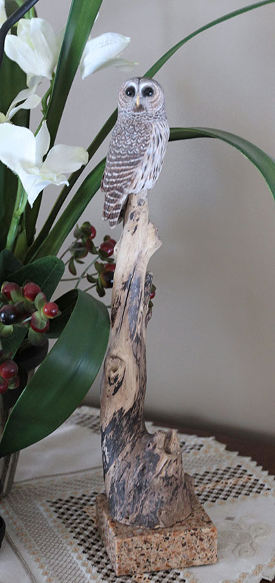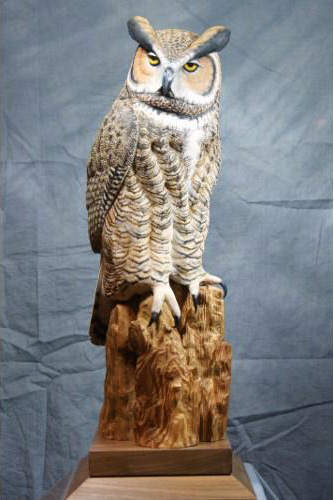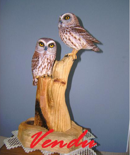 Yvan Dufour was born in Saint luce-sur-mer, Quebec in 1947 and now lives in Laval, Quebec. Drawing, painting and woodcarving began as a simple hobby but subsequently became his passion. Particularly intrigued by wildfowl, he has expanded his woodcarving repertoire to include ducks, raptors as well as a wide variety of North American birds. Over the years, his pieces have become a reflection of his personality. He has participated in numerous contests in Quebec and in the United States, where he has received several awards and honours for the quality, accuracy and realism of his works. In recent years, he has had the opportunity to teach the subtleties and secrets of sculpting to others for whom sculpting is a passion. Whether they are beginners or established artists, they are all seeking techniques with which to improve and master this form of art. From hummingbirds to eagles, wild fowls provide Yvan Dufour with a multitude of subjects to create art pieces that reflect his talent and passion.